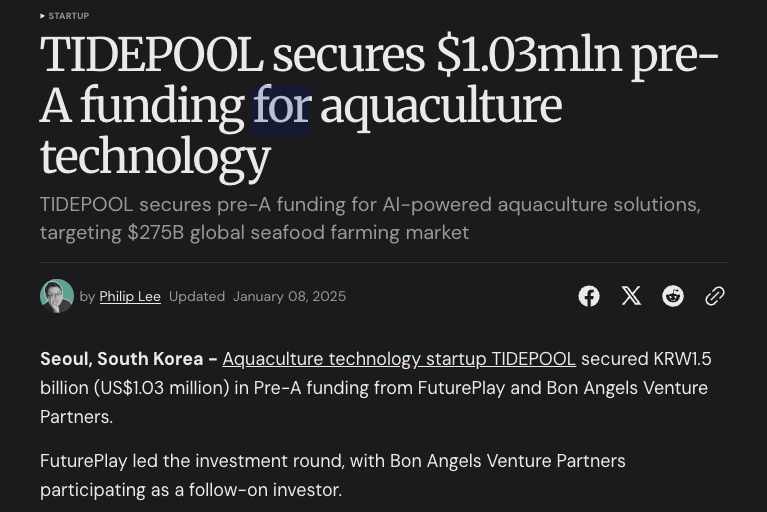 Be the First Aquaculture Startup to Represent South Korea and Asia with Tech.